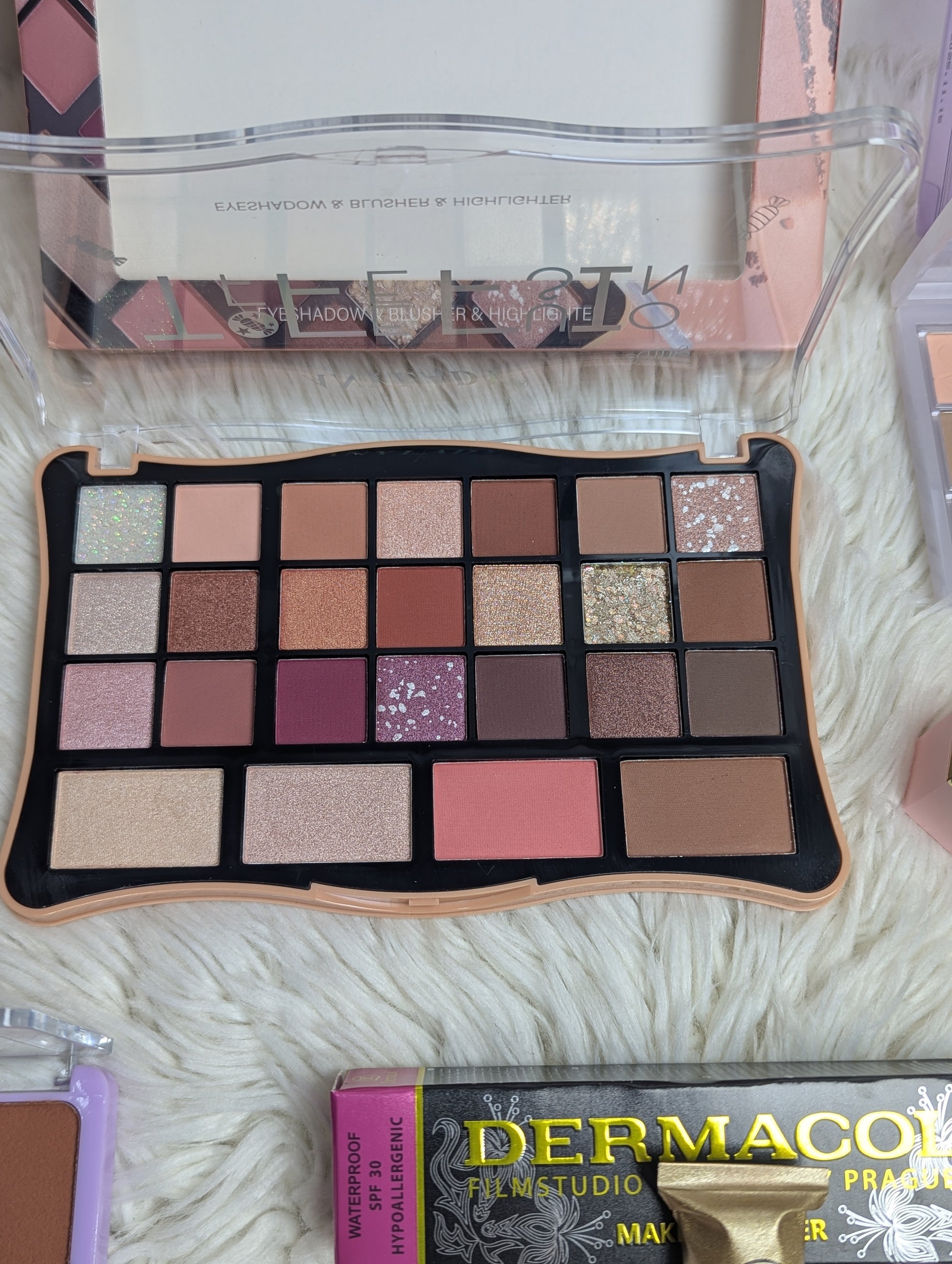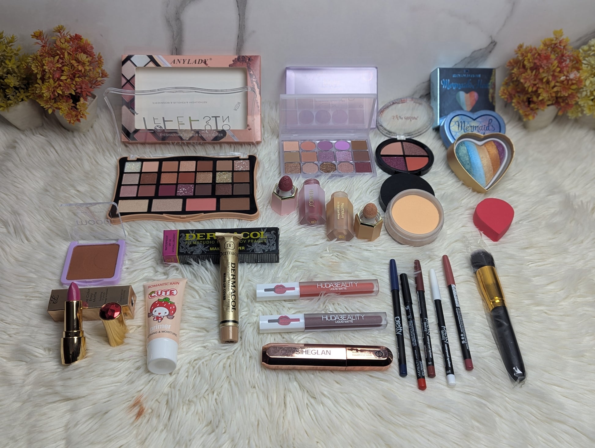 "*Lady Deal 22in1* - Your ultimate beauty companion featuring brands like *ANYLADA, Huda Beauty, SHEGLAM, DERMACOL*, and more! This 22-piece makeup collection offers everything you need to shine. Perfect for women who love makeup and want quality products at an unbeatable price of 2450.